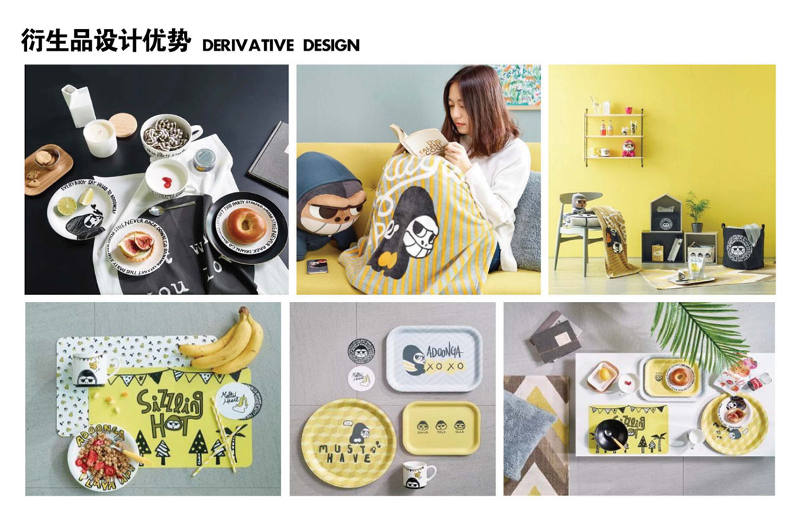 上海盛企文化創意擁有專業産品開發、采購(gòu)、物流、銷售體(tǐ)系,确保産品資訊全面完善,精通資源整合,擁有線上、線下多種營銷渠道。公司旗下擁有ADOONGA、WHAT THE DUCK、DUDA&DADA、PPANG PANDA、HAPPY HEART等多個國(guó)内外知名IP品牌。并且長期緻力于通過品牌的獨特形象,在玩具制造銷售、化妝、服裝、連鎖主題店(diàn)、主題餐飲品牌,各種出版物、出版發行等周邊事(shì)業,實現從(cóng)IP提煉到原創設計(jì)周邊生(shēng)産及販賣的一條龍服務。同時,與各行業品牌緊密合作(zuò),擴大(dà)周邊事(shì)業版圖,推出限定版主題産品及動畫(huà)作(zuò)品,實現知名度與IP價值的雙重提升。